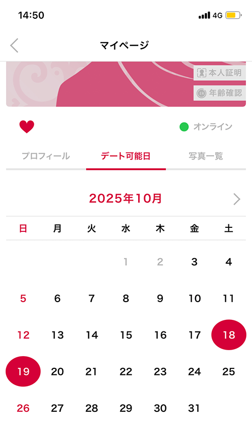 - カレンダー機能:あなたの空いている日に会える男性をピンポイントで探せます。